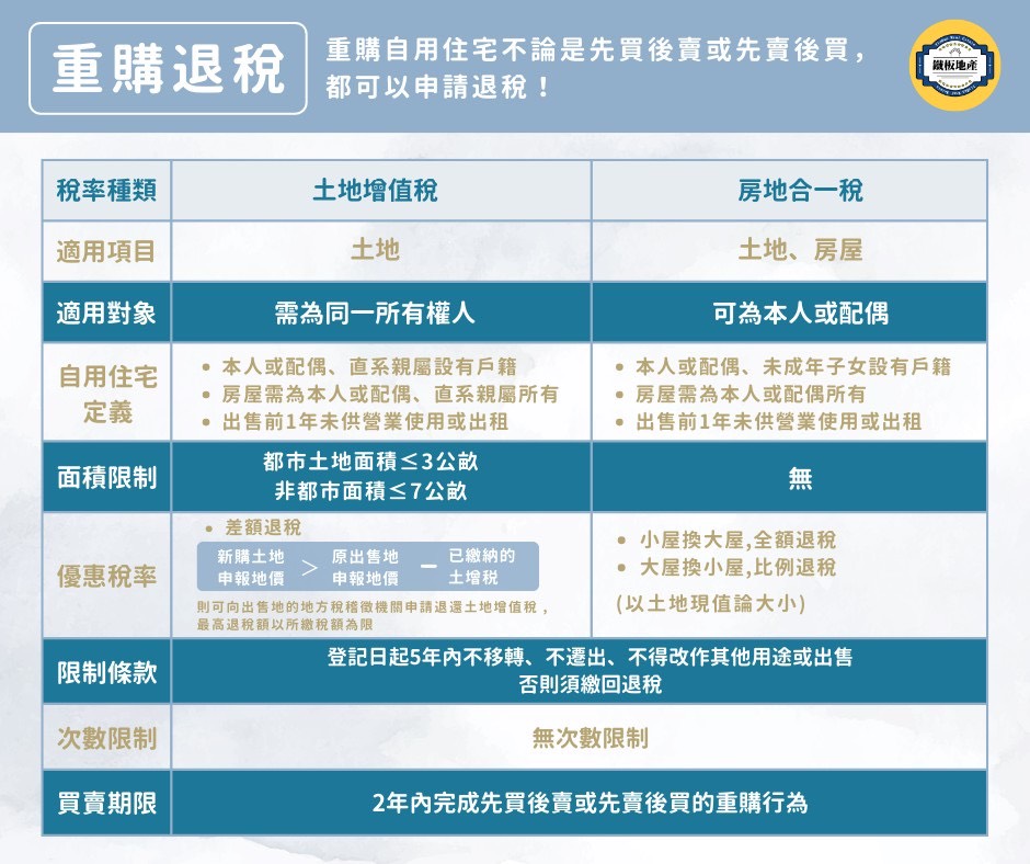 #換屋資訊 #重購退稅 #自用住宅 #鐵板一塊 #房地合一稅 #土地增值稅